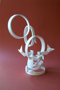 J. Jules Vitali has spent 23 years developing and perfecting Styrogami, which now exists in a number of forms. Each one of these delicate creations is sculpted from a single cup. The whole cup is utilized, nothing is thrown away. Every unique piece has been carved with the same two-bladed jack knife, a 32 year-old Sears brand Craftsman...no longer manufactured. Every piece that has been sculpted has come from a "found" cup, meaning it was acquired from some source other than purchase. Many still have the coffee or road dirt still on them. Styrogami is an art of expression, not one of perfection.